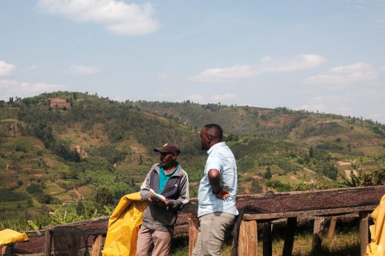For years we’ve wondered why coffee processed at Nkara presents a distinctly tropical flavour profile (think pineapple and passionfruit). When we asked Michel his thoughts on this, he gave us two possible reasons: the first, is due to the mineral composition of the soils in the region Nkara is located in. While most of Rwanda is covered in red earth, the ground at Nkara is a distinct white colour, suggesting a unique mineral makeup found nowhere else in the Ruli sector. Additionally, the processing site is located in a valley, and experiences a unique microclimate as a result. The side of the hill Nkara sits on receives direct sun exposure during the day, and in the evening, a cool breeze descends from the top of the mountains. This daily swing in temperature requires sorters to remain attentive to how parchment is drying, yet Michel believes it contributes to the complexity of the lots produced here. This year’s crop presents intense sweetness with pineapple acidity and blackcurrant jam and butterscotch in the cup.